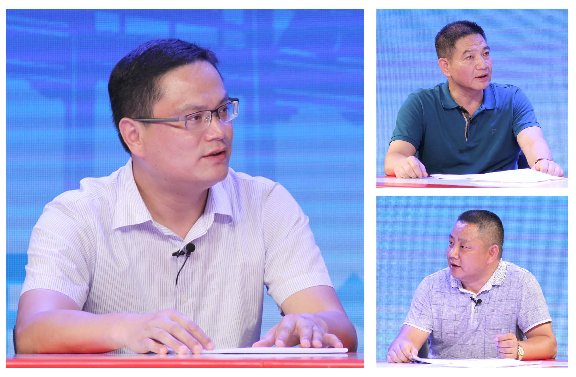 本期《今日高淳》邀请到的“一把手”是东坝镇镇长杨时平(左二),两位民意代表是来自上海电缆厂(南京)有限公司的赵进(左一)以及东坝镇游子山村的孔利民(右一),主持人王芳(右二)。