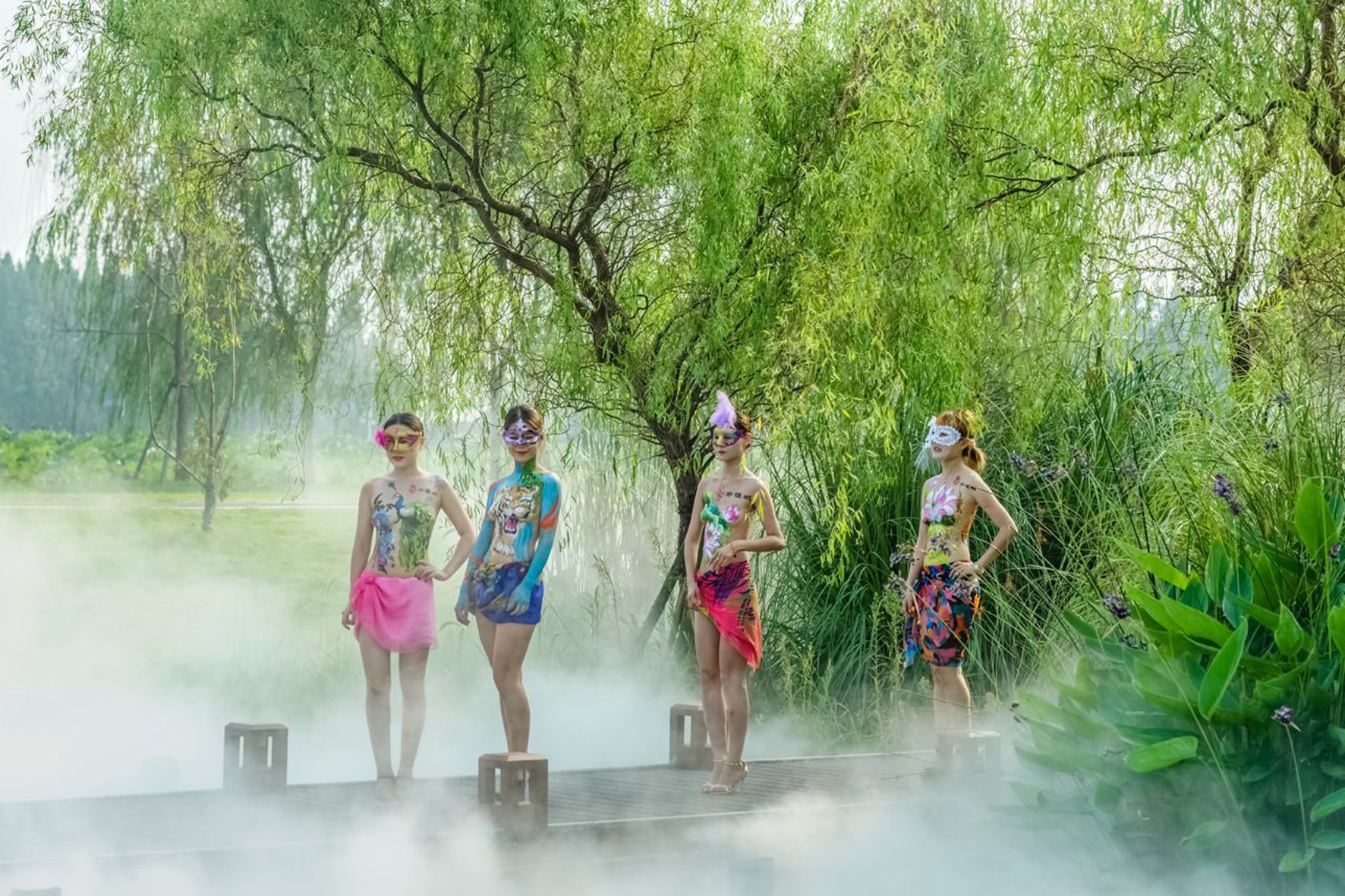 近日,人体彩绘惊艳亮相固城湖水慢城,创作者们以湖为背景,人为画布,尽情绽放创作灵感,游客们在欣赏到自然美景的同时,也体味了一番别样的时尚艺术。